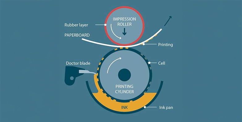 Each printing part has its specific function and advantage all of which contribute to the quality of the final print quality. Typically, Flexo printing produces a lower printing quality than the rotogravure printing designs.