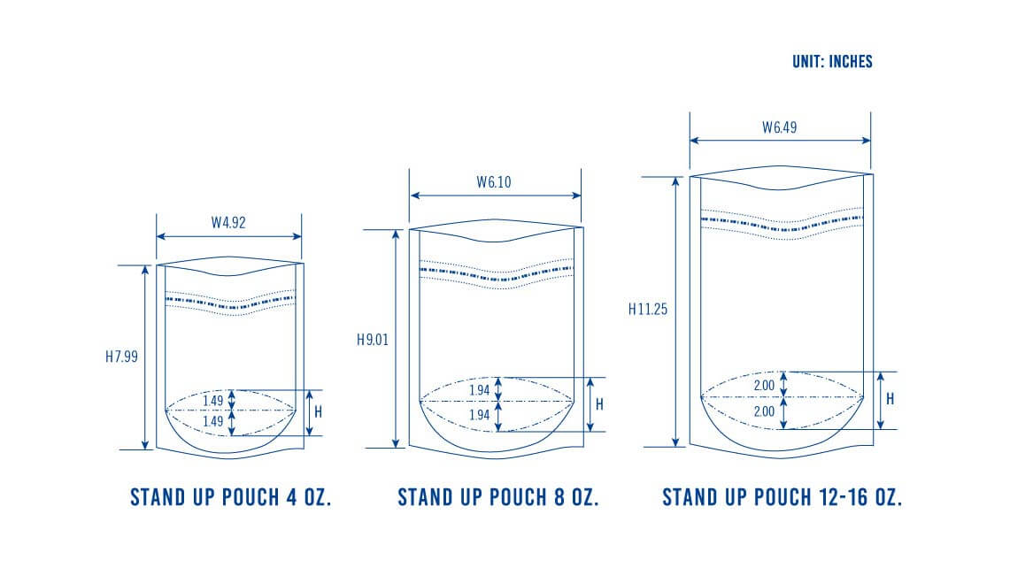 We use two main types of pouch printing: Flexographic printing and Rotogravure printing. Digital printing is also available and at small MOQs.